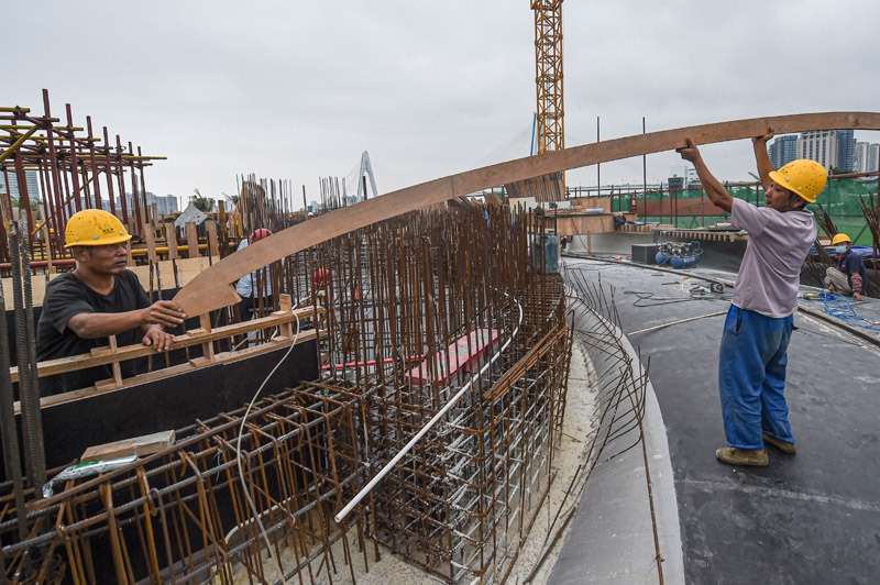 近日,在位于海口市海口湾的云洞图书馆项目工地,工人们加紧施工。目前,该项目已进入地上主体结构施工阶段。项目建成后,云洞图书馆将成为海口湾标志性艺术建筑,并为市民、游客提供一处阅读和休憩的场所。