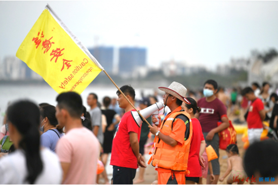 端午节当天,秀英区在假日海滩景区成立了端午节现场服务保障工作指挥部,设立11个工作小组,组织1300余人次开展西海岸沿岸的服务保障和疫情防控工作,利用智能监控系统和无人机在西海岸沿线全时航拍监控,确保广大市民、游客平安“洗龙水”。